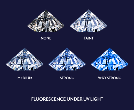 -       Là độ phát quang tự nhiên của viên Kim Cương dưới ánh sáng cực tím (chẳng hạn dưới tia cực tím của Mặt Trời). Đây lả 1 yêu tố tự nhiên của Kim Cương.